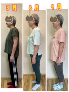 6月は徐々に背中がのびて顎が引けてきました。9月は自然と顎を引いて姿勢がきれいになりました✨